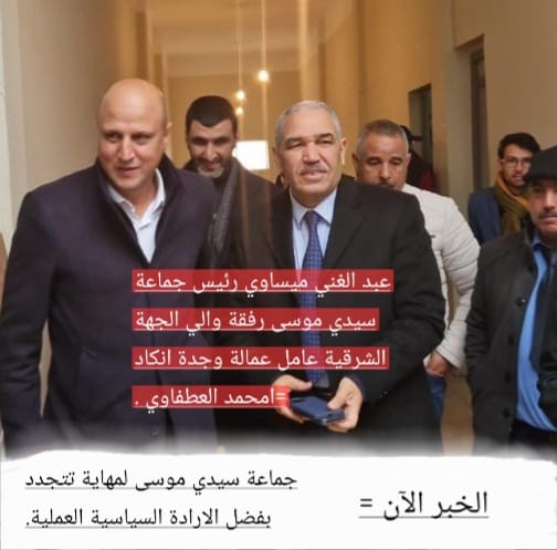 عبد الغني ميساوي رئيس جماعة سيدي موسى يصرح. مقالات مشابهة تغيير واضح وسياسة القرب وشركاء مهمين . 17 ديسمبر، 2025 رئيس جماعة سيدي موسى لمهاية يصف الشركاء بالمهمين ويدعوهم الى الوحدة الجماعية 17 ديسمبر، 2025 مجزرة بلمهاية بمواصفات الدقة التخصص. 17 ديسمبر، 2025