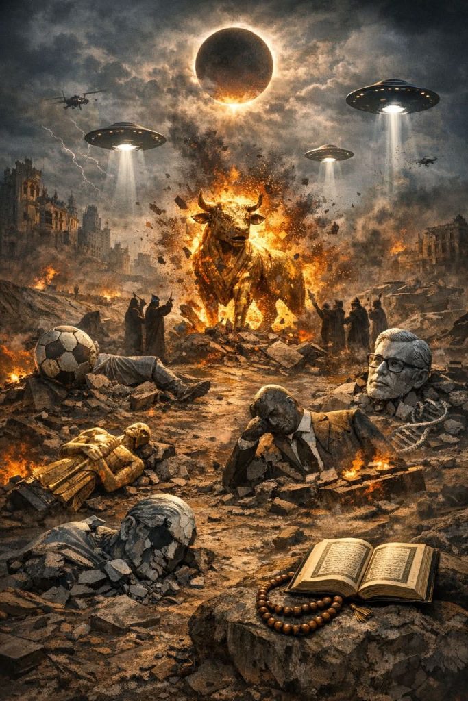 الأصنام التي صُنعت يهدمونها الآن، صنم في الفن وآخر في الرياضة وذاك في السياسة والذي بجانبه صنم في العلم… اليوم تتساقط هذه الأصنام تباعا، على شاكلة الأصنام التي أطيح بها يوم فتح مكة… شياطينو الإنس هؤلاء يريدون أن يقتبسوا من تاريخ الحق وجودهم، يريدون أن يعاندوا سنة الله في خلقه، فكما كان للمسلمين فتح في مكة، يريد هؤلاء عبدة الشياطين أن يصوغوا فتحا شيطانيا في العالم الحديث، هم من شكلوا للعبيد أصناما، هم من نافسوا ومن حاربوا عباد الله جهارا ونهارا، هم من جعلوا للعالم عجولا تعبد على غرار عجل السامري، وهم الآن من يحاولون نسف تلك الأصنام لترسيخ عبادة شيطانهم، فعبادتهم التي كانت نخبوية للشيطان سيحاولون عولمتها الآن لتسري على الجميع…هم من حولوا حمقى الديانات السماوية عن دينها نحو مادية رعناء، تقدس علما مزيفا، تدعي أن الكون جاء صدفة، وأن الانسان ابن عم لقرد، وأن الزواج والأسرة مفاهيم بالية يمكن ان تتطور لتصبح مشاعا لا يعرف نسل هذا من ذاك…واليوم بعد ان ألحد من ألحد، وتذبذب من تذبذب، وضعف إيمان من ضعف، وتزلزل إسلام الكثيرين، وتلاشت مسيحية العديدين، بحجة أن العلم والمنطق يزلزل كيانات الديانات، ويكذب التراث والموروثات، اليوم يصدمونك فجأة لترى كل ما تعلقت به من أصنام مادية يتلاشى أمام عينيك، وفي لجة الصدمة، وفراغ الروح، سيأتونك بالبديل النيراني الذي سييغلفونه بطابع منمق مزركش فيسمونه نورانيا، سيمهدون لطريقهم بنظرية التصميم الذكي التي ستعوض نظرية داروين بعد ان فقدت بريقها ومرتكزاتها المادية، وسيقولون لك، نعم الانسان مخلوق من الفضائيين ولم يأت صدفة، سيمهدون لهذا المبنى الشيطاني سيرسخونه فكرا ومنهجا، لكن… يقينا كل ما خططوا له سيكون وبالا عليهم، وسيعود بالنفع للحق وناسه، فهم يمكرون وشيطانُهم، لكن لنا يقين في مكر الله عز وجل الذي سيقلب كل شيء ضدا عليهم… إنه يقين نراه كما نرى أصابعنا التي تكتب هذا المنشور…في هذا الشتات كله الذي يريدونك فيه أن تتعب من حيث الوعي والفكر، حتى يسهل اقتحام مَنَعتك وقوة إيمانك، في هذا الشتات كله الزم قرآنك وسنة نبيك، عض عليهما، مهما أخطأت عد إليهما، فالاستغفار سبيل نجاتك، بالاستغفار لا تفقد الصلة بمولاك الحق، بالاستغفار لا يموت قلبك، ومهما فرَّطت سيأتي يوم تنبجس عيون الاستغفار في قلبك فتمنحك إيمانا وعبادة والتزاما بدين الحق وعبادة الحق سبحانه.واعلموا أن هذا الخطاب أوجهه لي قبل أن أوجهه لأي أحد، فلست بأحسن منكم ولا في مقام الواعظ ولا التقي ولا العالم، فقط انا امرؤ يواسي نفسه بنفسه يذكرها، حتى تثبت والله المستعان.