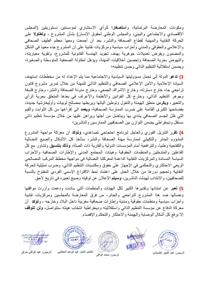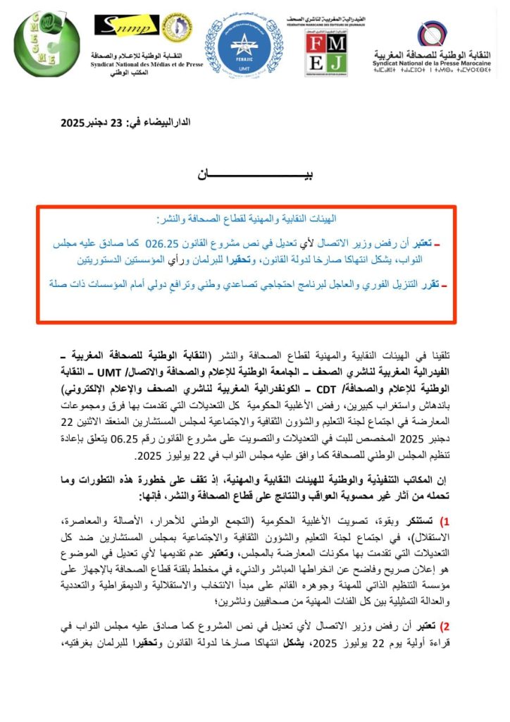 بيان من الهيئات النقابية والمهنية لقطاع الصحافة والنشر