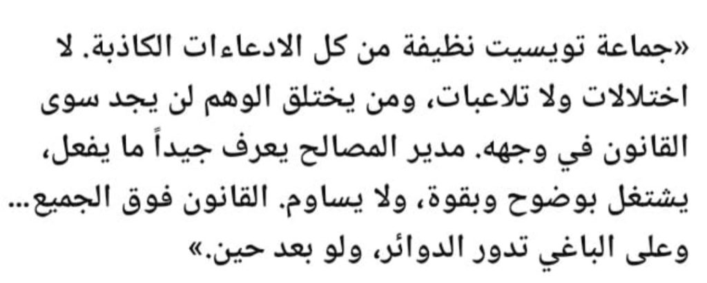 تصريح مدير مصالح جماعة تويسيت =ميمون ناصري . مقالات مشابهة ناصري ميمون مدير مصالح جماعة تويسيت الحدودية =الانتماء النقابي حق ارادي ولا اتباع فردي وجماعة تويسيت خالية من اختلالات ادارية مجلس يسير بتؤدة وتدبير معقلن. 13 ديسمبر، 2025 تصريح مدير مصالح جماعة تويسيت مؤكدا على تطبيق القانون 12 ديسمبر، 2025 رسالة الشرق تفتح تصريحات اوجار الزلزلة؟ 5 ديسمبر، 2025