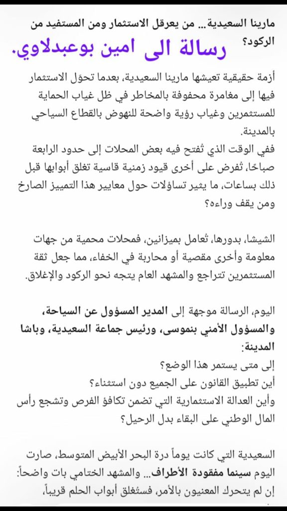 رسالة إلى امين بوعبدلاوي مسؤول السياحة بجهة الشرق مقالات مشابهة مارينا تستغيث فهل من منقذ؟ 30 أكتوبر، 2025 لن نتهاون في خدمة ساكنة اكليم 30 أكتوبر، 2025 رابح المزروعي عضو بمجلس اكليم وناشط جمعوي. 30 أكتوبر، 2025