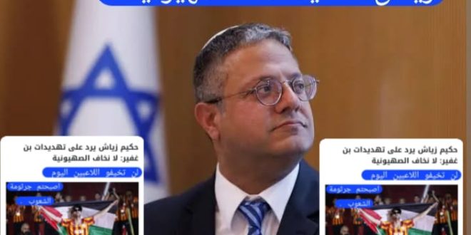 ادانة عالمية ضد وزير الامن القومي الاسرائيلي بن غفير تهديدك للاعب اامغربي زياش خطوة اخرى في طريق محو الصهيونية من سياسات العالم لغة التهديد ليس من شيم الرجال؟