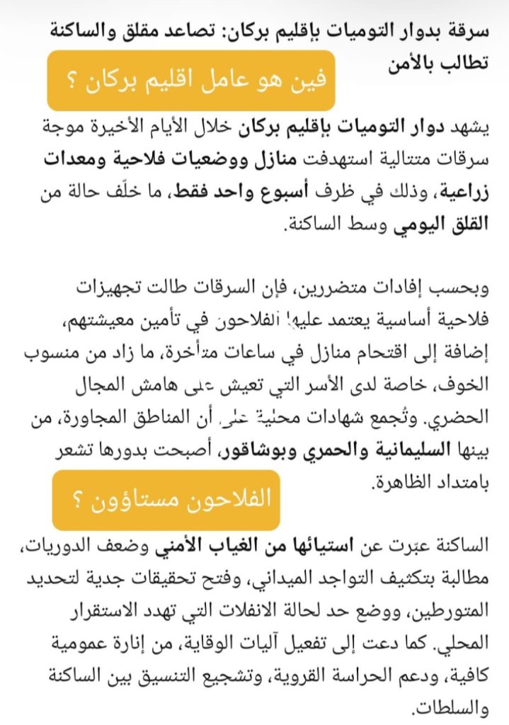 سرقة بدوار التوميات بإقليم بركان : منازل وضعيات فلاحيةمعدات فلاحية في أسبوع واحد الساكنة تعيش القلق اليومي السليمانية الحمري بوشاقور والأمن غائب ؟ مقالات مشابهة السعيدية بين المخطط الوطني للساحل وإكراهات التنزيل الميداني 24 ديسمبر، 2025 رسالة الى عامل اقليم جرادة شكيب بلقايد واش راك على علم بلي قيادة عين بني مطهر بدون قائد منذ ستة أشهر وشؤون المواطنين تبقى بين نارين إلى متى المعاناة؟ 22 ديسمبر، 2025 عراقيل غير مبررة تُجهض حلم ساكنة أوكسانمندوبية املاك الدولة في مواجهة التنمية والرياضة… منطق.. المزاجية بدل دولة المؤسسات 21 ديسمبر، 2025