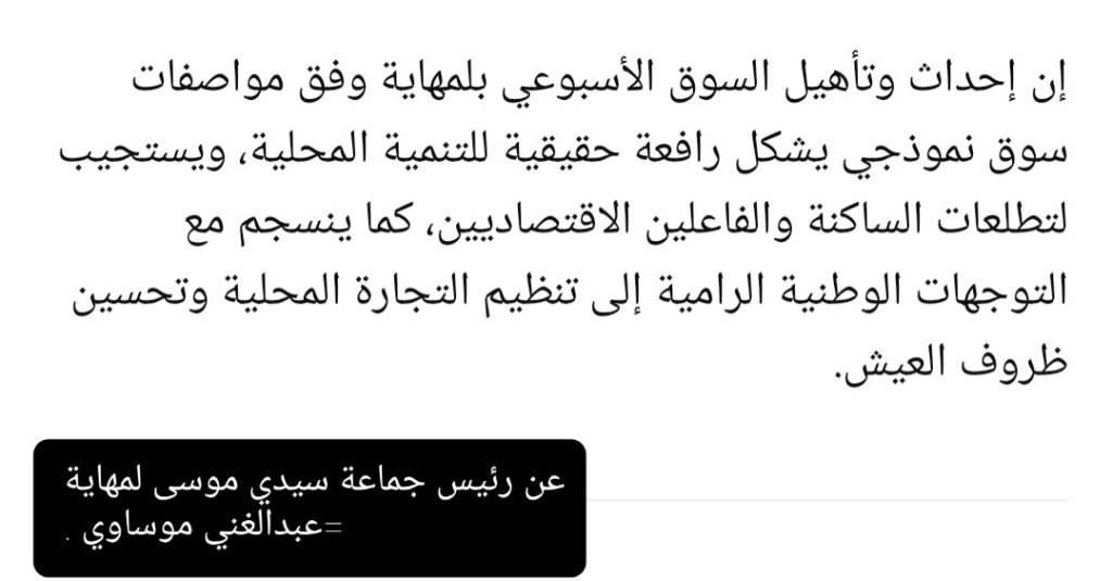 عبد الغني موساوي رئيس جماعة سيدي موسى يصرح. مقالات مشابهة تغيير واضح وسياسة القرب وشركاء مهمين . 17 ديسمبر، 2025 رئيس جماعة سيدي موسى لمهاية يصف الشركاء بالمهمين ويدعوهم الى الوحدة الجماعية 17 ديسمبر، 2025 مجزرة بلمهاية بمواصفات الدقة التخصص. 17 ديسمبر، 2025