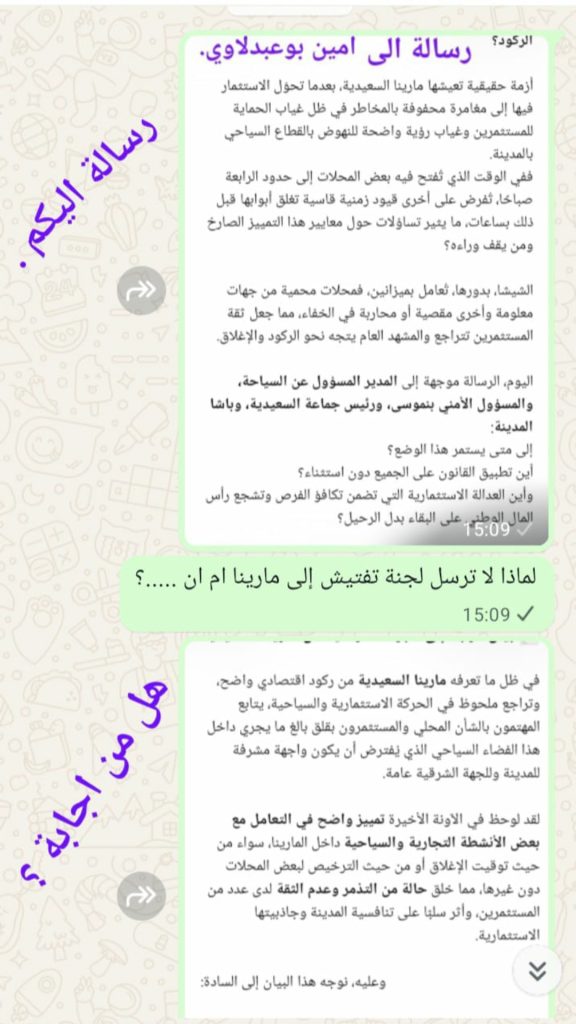 مارينا تستغيث فهل من منقذ؟ مقالات مشابهة رسالة إلى امين بوعبدلاوي مسؤول السياحة بجهة الشرق 30 أكتوبر، 2025 لن نتهاون في خدمة ساكنة اكليم 30 أكتوبر، 2025 رابح المزروعي عضو بمجلس اكليم وناشط جمعوي. 30 أكتوبر، 2025