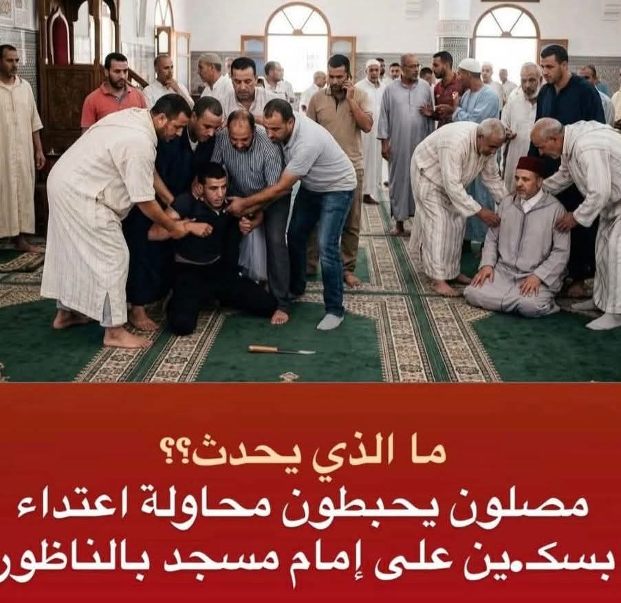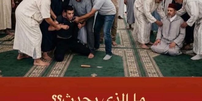 شهد أحد مساجد حي إيكسريواً بمدينة أزغنغان، زوال اليوم الأحد8مارس 2026، حالة من الاستنفار بعدما حاول شخص الاعـ.تداء على إمام المسجد باستعماله سـ…كين، تزامناً مع أداء صلاة الظهر.وحسب مصادر محلية ، فقد تدخل عدد من المصلين بسرعة فائقة في انقاذ الامام وتمكنوا من محاصرة المعني بالأمر والسيطرة عليه قبل أن يتسبب في أي أذى، حيث لم يتم تسجيل أي إصــ…ابات و لله الحمد .وتشير المعطيات الأولية إلى أن الشخص المعني يُرجح أنه يعاني من اضطرابات نفسية هو الاخر . وقد حلت عناصر الشرطة بعين المكان، حيث جرى توقيفه ونقله إلى مستشفى الأمراض العقلية بمدينة العروي لإخضاعه للفحوصات اللازمة واتخاذ الإجراءات المعمول بها.هذا جاء بعد احداث جـــ…ريمتي قــ….تل امام مسجد اقليم الدريوش فجر يوم الجمعة الماضية و قـــ…تل امام صفرو عصر نفس يوم الجمعة ..