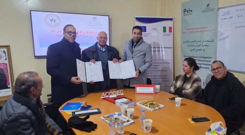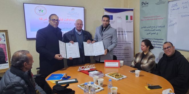 ووقّع هذه الاتفاقية عن جمعية أكوديك رئيسها السيد الميلود رزوقي، وعن النقابة المستقلة للصحافيين المغاربة السيد علال المرضي، الأمين الجهوي للنقابة، حيث تهدف إلى تطوير برامج التكوين والتوعية والدعم، وتوحيد الجهود من أجل النهوض بالصحافة المهنية والأخلاقية، وتعزيز قدرات الصحافيين والإعلاميين في التعاطي المسؤول مع قضايا الهجرة وحقوق الإنسان.